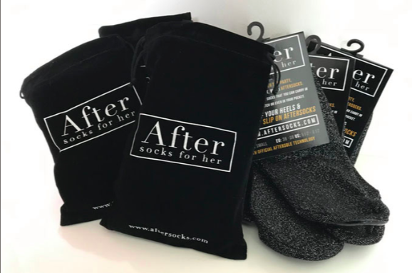 The Creators say ” Aftersocks is an elegant solution to a problem that most women face. A solution so simple that no one ever thought of it: Aftersocks that have been thoughtfully designed and crafted with an underside constructed from PVC and extra soft layers of cushioning that hug the contours of your feet.”