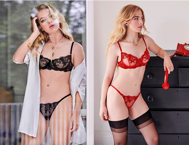 The Blubella range features lots of red and black lace, stockings and suspenders, verging on strappy bondage wear – so this is a risqué debut for a 20 year old.