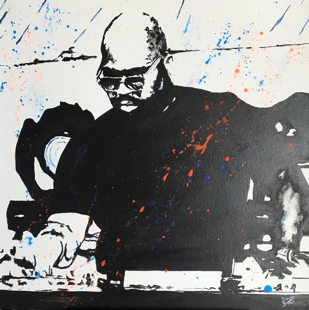 Davey spent time dabbling with various ideas and mediums, before settling on acrylics as his preferred choice of paint. He started off painting his favourite actors, footballers and DJs. Subjects such as Robert De Niro, Alan Shearer and Frankie Knuckles crystallised Davey’s interest in portrait art, and the rest is history.