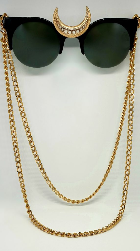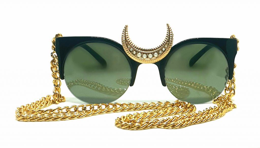 The Rock N Roll Bride featured vendor’s latest Luna Third Eye Shades include a detailed gold crescent moon embellished with white gems and removable gold chains. Currently priced at just £35, including free UK shipping. Available to purchase via her instagram: @hathor.co and Facebook Page: Facebook.com/hathor.co – where Laura will be launching the rest of her collection over the coming weeks to lighten up lockdown.