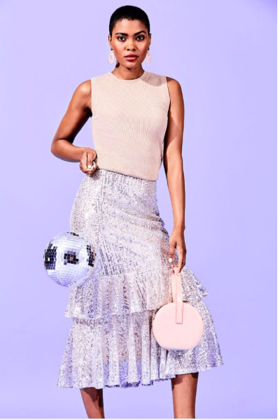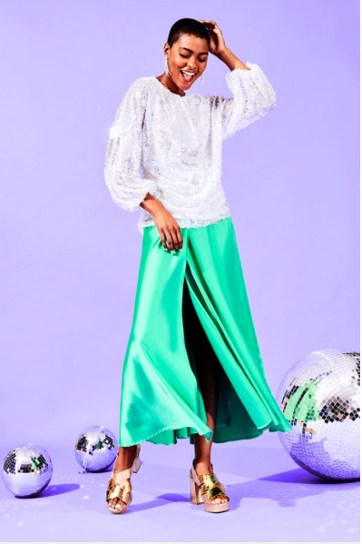 However, if you’re looking for a fancy frock alternative, you’ll also find lots of sparkly separates on the high street too. Try a stunning sequin skirt and tone it down with a simple tee, or top off your look with a voluminous blouse. Either way disco ball dressing has never looked so good.