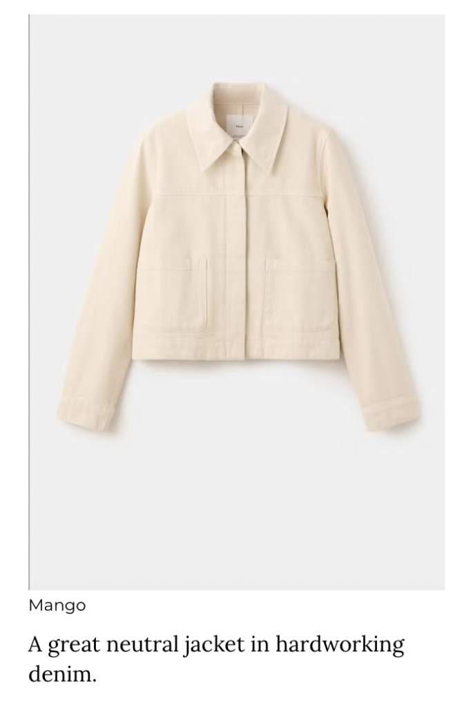 Mango is a treasure trove of new season style buys. Maybe it’s true that European fashion companies do it better – there’s always a freshness and a big nod to a trend, but the clothes also have a sense of longevity and sophistication. The colour palette has a lot to do with this too. For me, style is about looking effortless and pared-back, but you can still achieve this with trend-led pieces, so long as you don’t go crazy with colour (the same is true if you opt for classic shapes but buy them in bolder colours).
