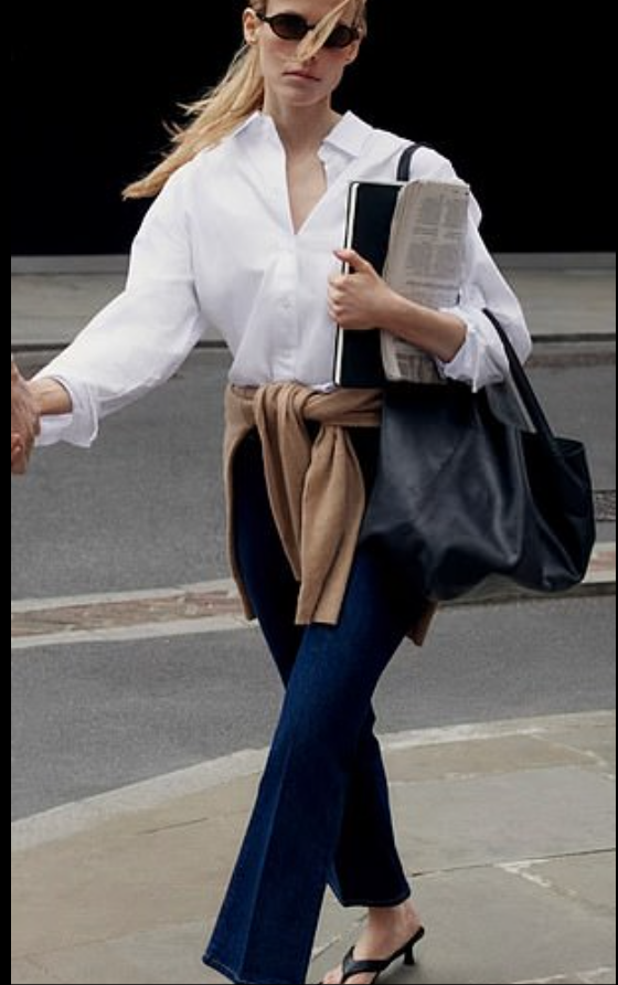 While Carolyn loved Prada clothes, carried a Birkin and worked as a publicist for Calvin Klein, those with more modest budgets can emulate her ‘quiet luxury’ wardrobe with a £26 white shirt and a £20 black tote bag from the high street giant.