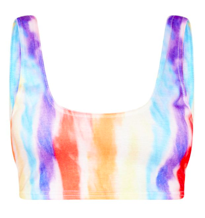 Make your look colourful and bright with this crop top. Featuring a multi tie dye print material in a length that’s been cropped perfectly. Pair with the matching shorts to complete the look or wear with jeans.