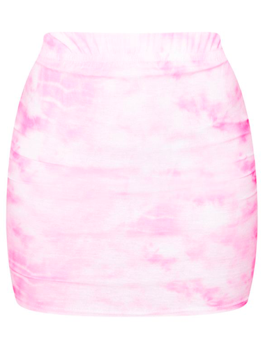 Switch up your weekend look with this must-have skirt. Featuring a pink tie-dye fabric with a bodycon fit, team this with the matching tee.