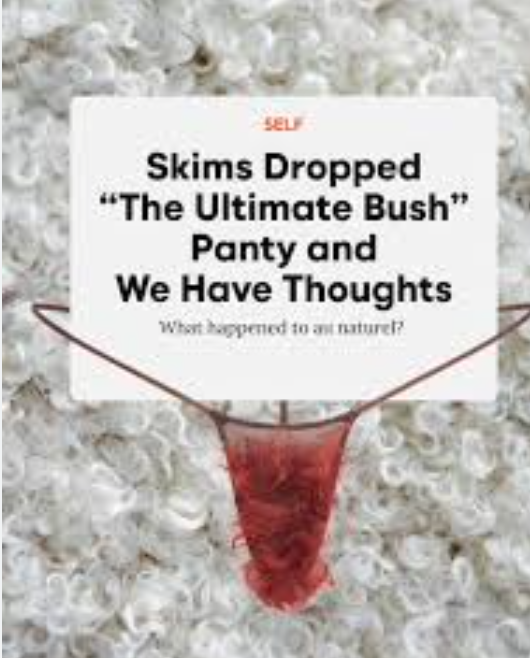 Kim Kardashian has raised eyebrows with the latest addition to her underwear range, Skims — a “barely there” thong, lavishly adorned with fake pubic hair.