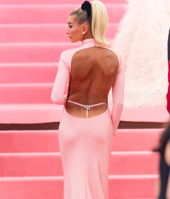 I should point out that J.Lo wasn’t the “celeb spotted” originator of the trend. Hailey Baldwin did it first, when she took to the Met Gala red carpet back in May in a baby pink Alexander Wang gown with a thong detail. Hailey Bieber did it too at the 2019 Met Gala with a thong-based dress. And following chronologically afterwards was supermodel Bella Hadid, who flaunted her toned abs whilst on the runway for Versace SS20 back in June.