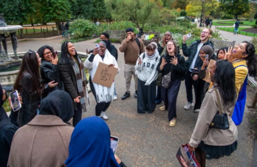 A trend where groups of people come together in public or private spaces to scream at the top of their lungs, often organized via social media.